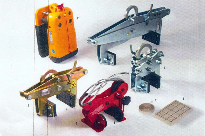 Il modello F è una morsa per sollevamento verticale dotata di un dispositivo di bloccaggio "Aperto"-"Chiuso" che facilita il posizionamento e la rimozione della morsa dal pezzo, ed è usata principalmente per la costruzione e la movimentazione di lamiere e strutture in acciaio. Assicurarsi che la morsa sia ben inserita nel pezzo da sollevare, lasciando 4/5mm di spazio tra il retro della ganascia e il carico, e che la leva sia posizionata su "Chiuso" prima di iniziare il sollevamento. Non sollevare lateralmente con angolo superiore a 10°. Prima di dare inizio al sollevamento, assicuratevi che la leva di bloccaggio sia posizionata su "Chiuso". Rimuovete la morsa solo dopo esservi assicurati che il carico sia completamente fermo e in una posizione stabile. Non sollevate lamiere il cui spessore sia minore di 1/4 dell'apertura massimo. Non sollevate alcun carico minore di 1/5 della portata della morsa.